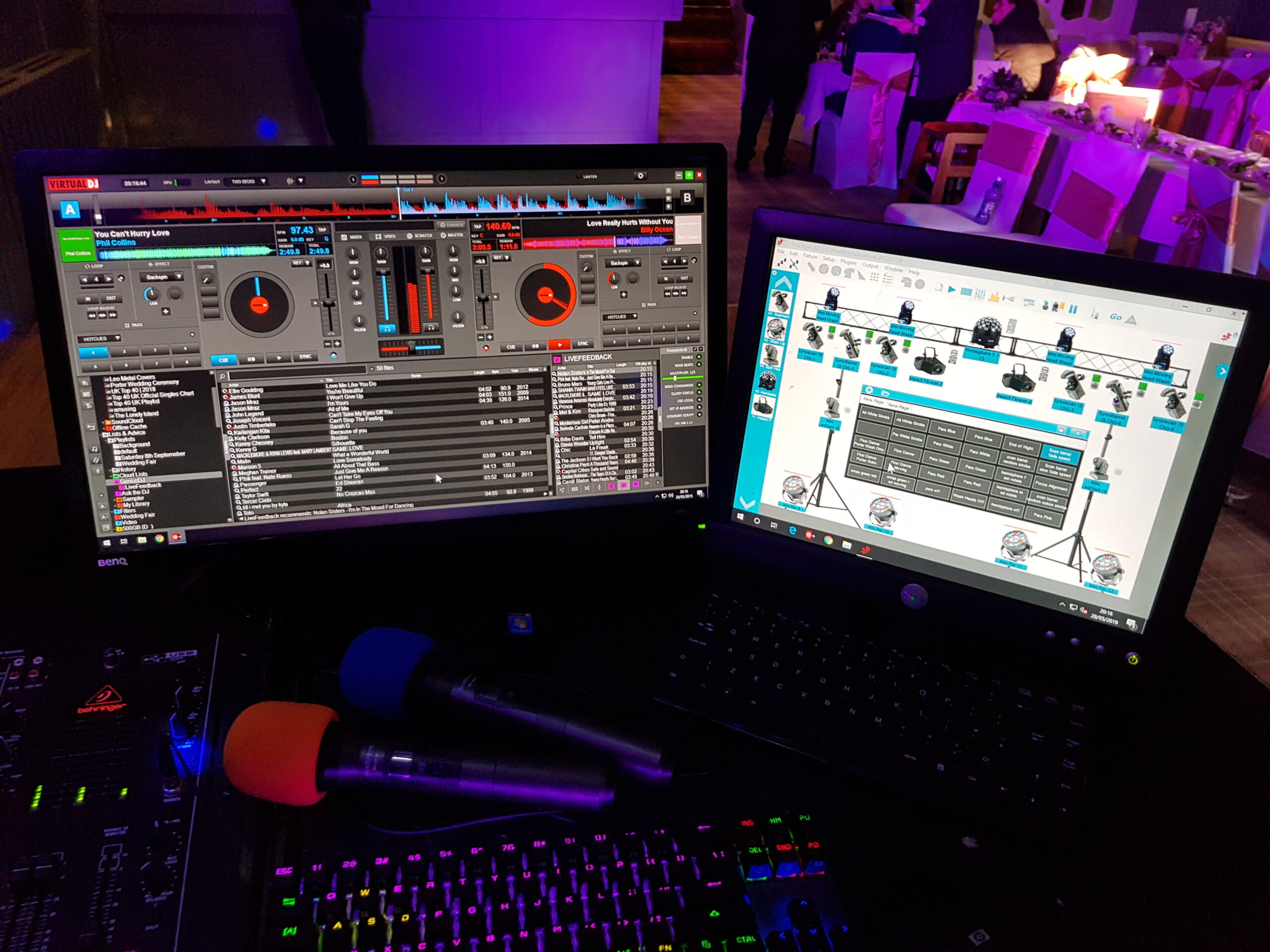 We use a computer based digital playback system which allows us to search our extensive music library in under a second. We carry backup units with us in the unlikely event of equipment failure. Our sound system is capable of catering for events from 2 to 200+ people and we are always aware of our sound levels at events to ensure that the music is loud enough for people to dance to on the dancefloor but also quiet enough so that people wanting to talk at the back of the room don’t have to shout at each other.